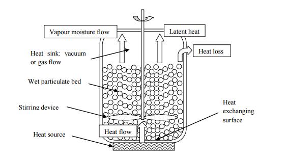 在接触干燥中有五种元素:热源,热交换表面,湿颗粒床,床(或真空)上方的相和混合装置,在图2中,选择了激活床接触干燥设备以显示这些元素。